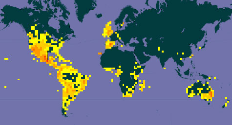 There are only a few known fossils of cacti, so geographical distribution gives us some evidence. Except for a relatively recent spread of Rhipsalis baccifera which grows in Africa and Sri Lanka, cacti are plants of South America and the mainly southern regions of North America. This suggests cacti must have evolved after the ancient continent of Gondwana split into South America and Africa. This occurred during the Early Cretaceous, around 135 million years ago. The volcanic Isthmus of Panama rose up from the sea floor and bridged the formerly separated continents of North and South America. Plants and animals migrated from one continent to the other. This migration peaked dramatically around three million years ago during the Piacenzian age. Cacti are thus native to the Americas, ranging from Patagonia in the